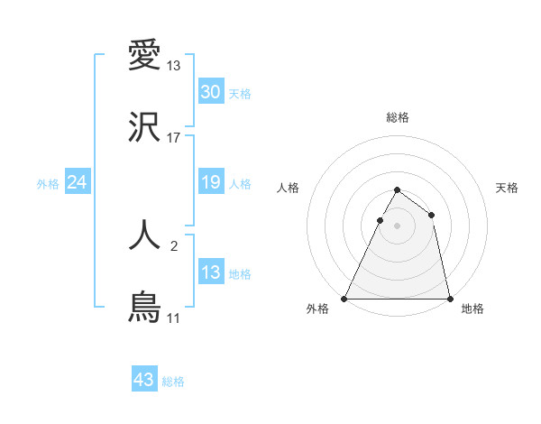 愛沢 人鳥さんの総格は43画の2点!