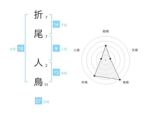 折尾 人鳥さんの総格は27画の3点!