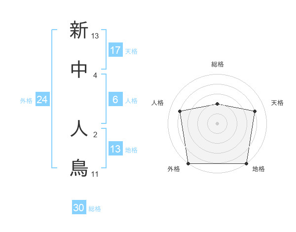 新中 人鳥さんの外格は24画の5点!