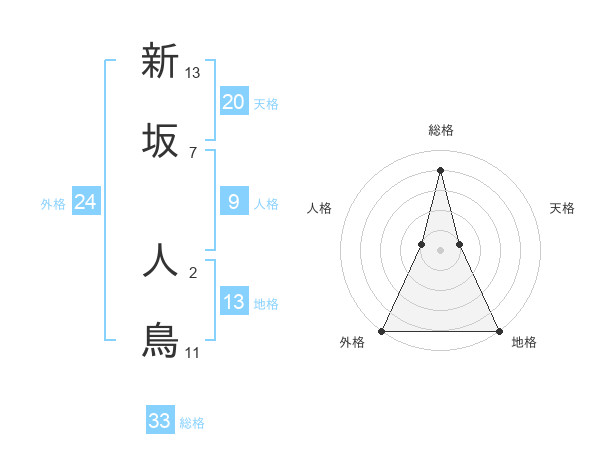 新坂 人鳥さんを姓名の画数から五運を鑑定