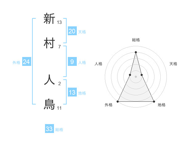 新村 人鳥さんを姓名の画数から五運を鑑定