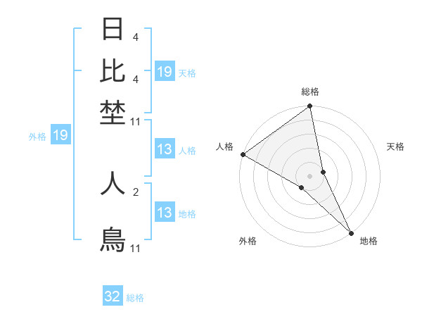 日比埜 人鳥さんの総格は32画の5点!