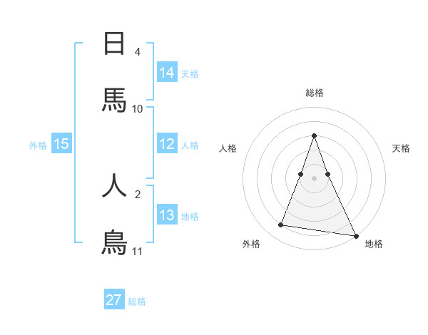 日馬 人鳥さんの総格は27画の3点!