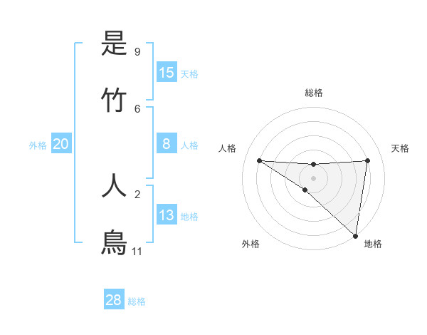 是竹 人鳥さんの総格は28画の1点!