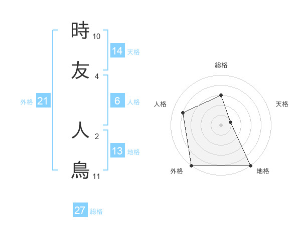 時友 人鳥さんの外格は21画の5点!