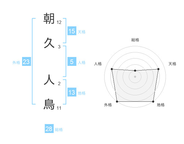 朝久 人鳥さんの外格は23画の5点!
