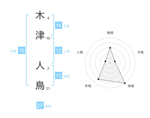 木津 人鳥さんを姓名の画数から五運を鑑定