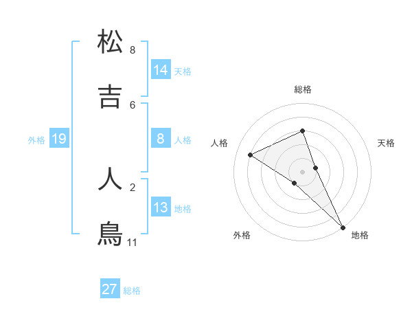 松吉 人鳥さんを姓名の画数から五運を鑑定