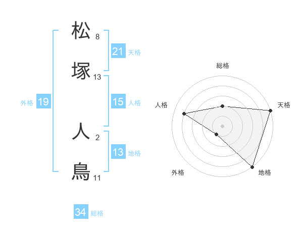 松塚 人鳥さんを姓名の画数から五運を鑑定