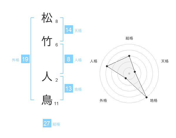 松竹 人鳥さんの総格は27画の3点!