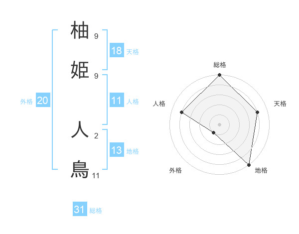 柚姫 人鳥さんを姓名の画数から五運を鑑定