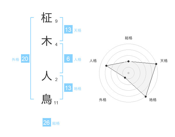 柾木 人鳥さんの総格は26画の2点!