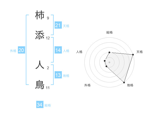 柿添 人鳥さんを姓名の画数から五運を鑑定
