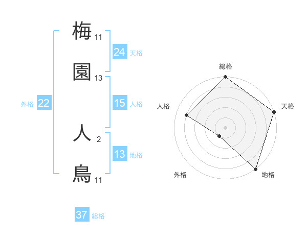 梅園 人鳥さんの総格は37画の5点!