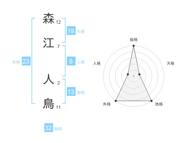 森江 人鳥さんの総格は32画の5点!