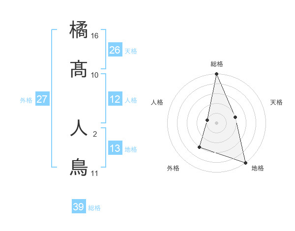 橘髙 人鳥さんの総格は39画の5点!