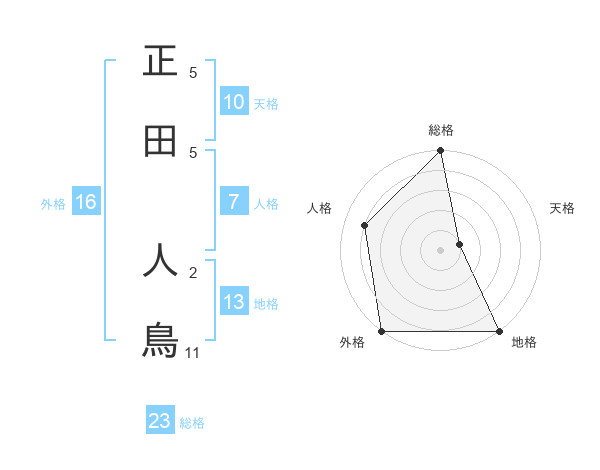 正田 人鳥さんを姓名の画数から五運を鑑定