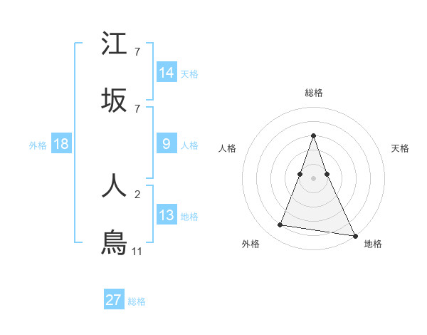 江坂 人鳥さんの総格は27画の3点!