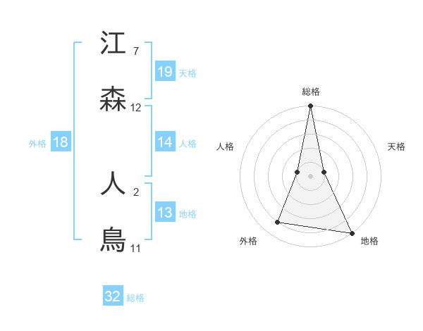 江森 人鳥さんの総格は32画の5点!