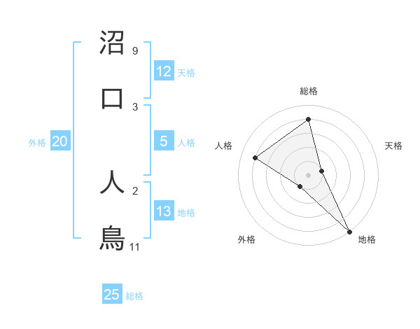 沼口 人鳥さんの地格は13画の5点!