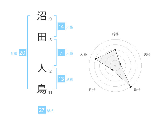 沼田 人鳥さんを姓名の画数から五運を鑑定