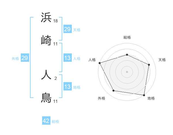浜崎 人鳥さんを姓名の画数から五運を鑑定