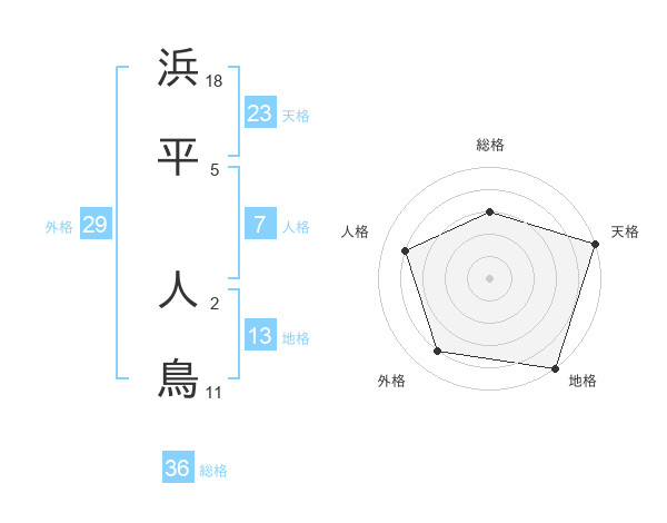 浜平 人鳥さんを姓名の画数から五運を鑑定