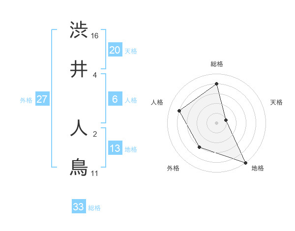 渋井 人鳥さんの総格は33画の4点!
