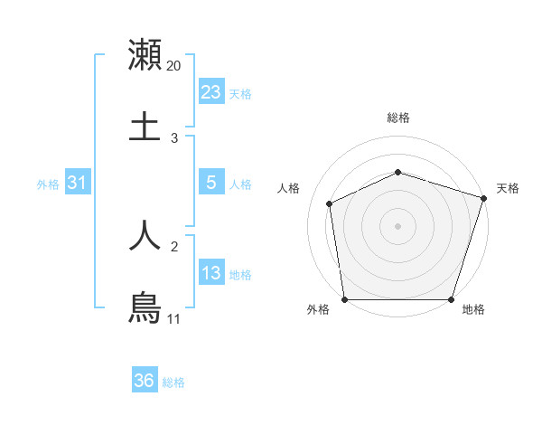 瀬土 人鳥さんを姓名の画数から五運を鑑定