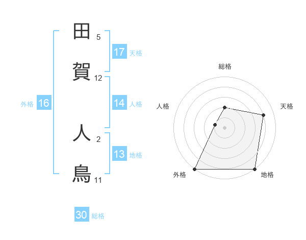 田賀 人鳥さんを姓名の画数から五運を鑑定