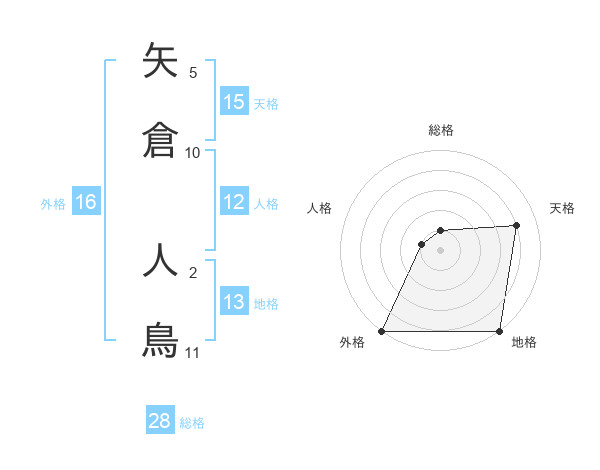 矢倉 人鳥さんの総格は28画の1点!