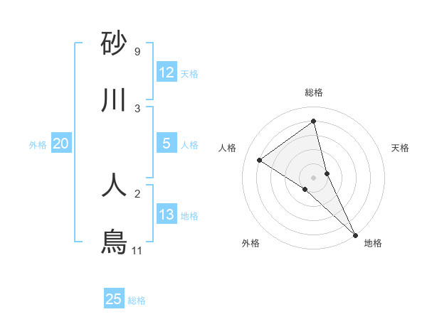 砂川 人鳥さんを姓名の画数から五運を鑑定