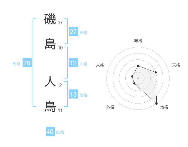 磯島 人鳥さんの総格は40画の2点!