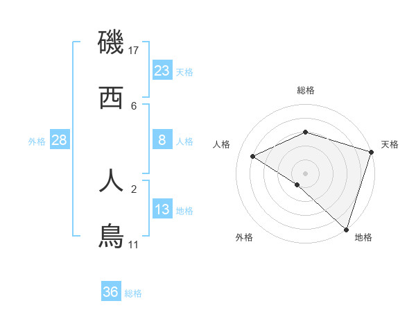 磯西 人鳥さんを姓名の画数から五運を鑑定