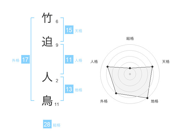 竹迫 人鳥さんの外格は17画の4点!