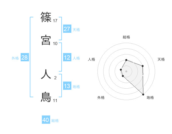 篠宮 人鳥さんの地格は13画の5点!
