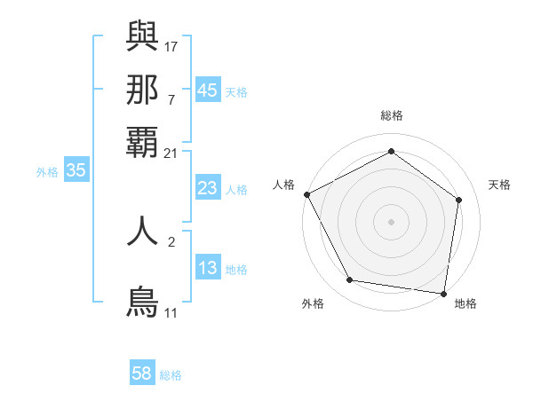 與那覇 人鳥さんを姓名の画数から五運を鑑定
