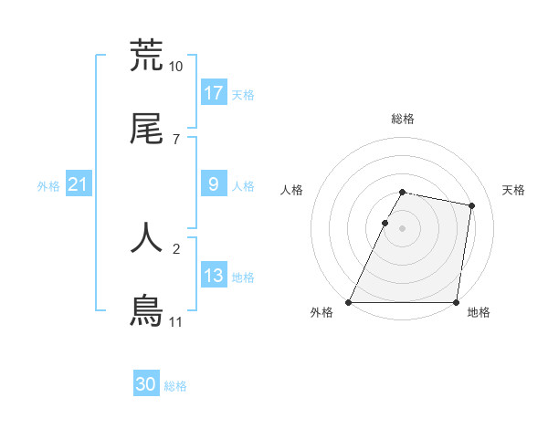 荒尾 人鳥さんの外格は21画の5点!