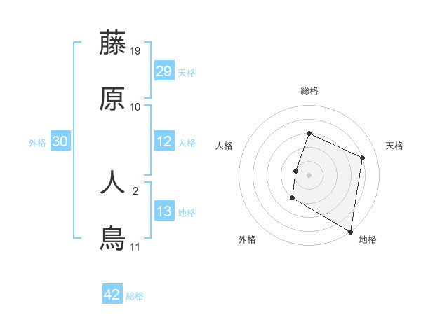 藤原 人鳥さんを姓名の画数から五運を鑑定