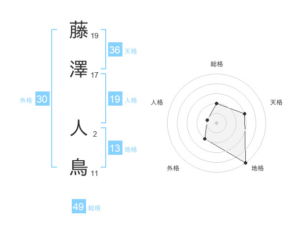 藤澤 人鳥さんの総格は49画の2点!
