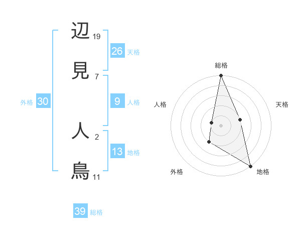 辺見 人鳥さんの総格は39画の5点!