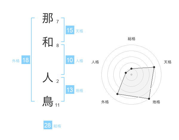 那和 人鳥さんの天格は15画の4点!
