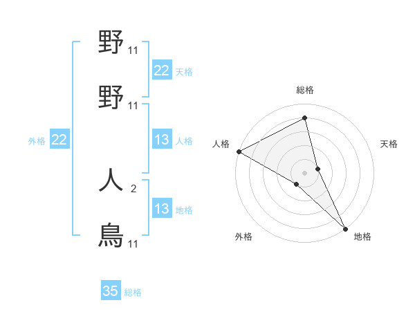 野野 人鳥さんの総格は35画の4点!