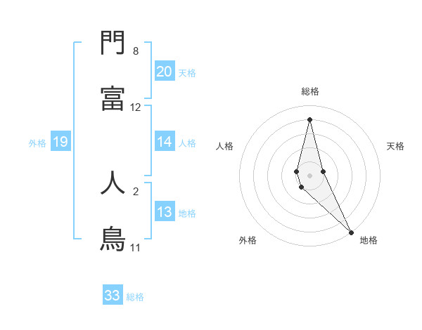 門富 人鳥さんを姓名の画数から五運を鑑定