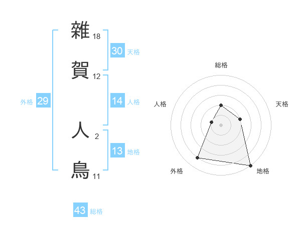 雜賀 人鳥さんを姓名の画数から五運を鑑定