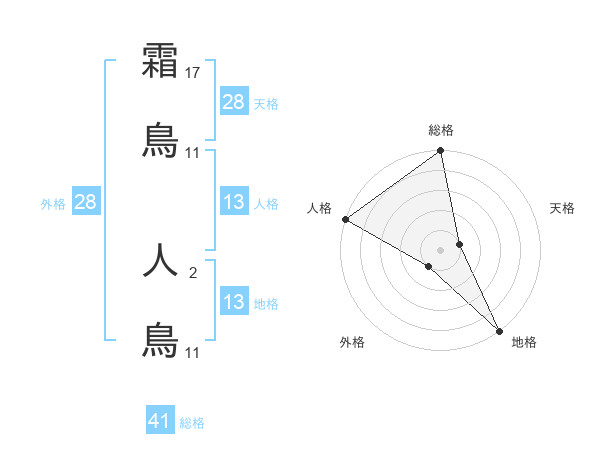 霜鳥 人鳥さんを姓名の画数から五運を鑑定
