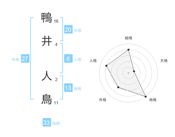 鴨井 人鳥さんを姓名の画数から五運を鑑定