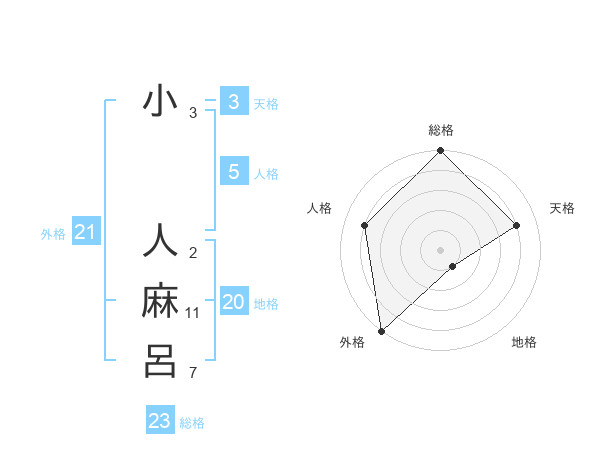 小 人麻呂さんを姓名の画数から五運を鑑定