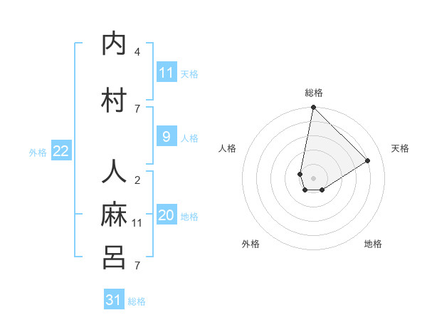 内村 人麻呂さんを姓名の画数から五運を鑑定