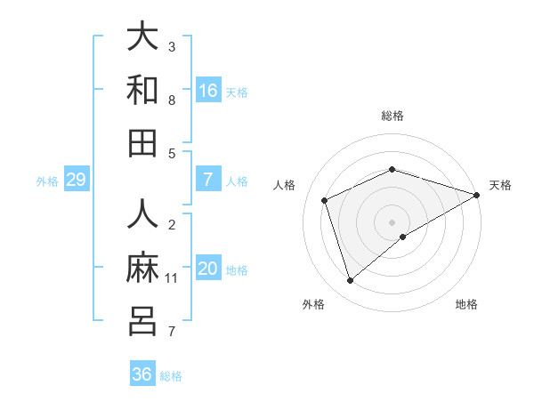 大和田 人麻呂さんを姓名の画数から五運を鑑定